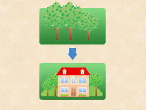田や畑、山林などを造成して登記簿の地目を変更していない場合には、「地目変更」登記を申請します。山林や畑であった所に建物を建築したとき、または駐車場や資材置き場等にしたとき、実際の地目に変更する登記手続きです。但し、登記簿の地目を農地(田、畑)から農地以外(宅地、雑種地等)に変更する場合は、農業委員会に対して農地法の届出又は都道府県に対して農地法の許可が必要になります。